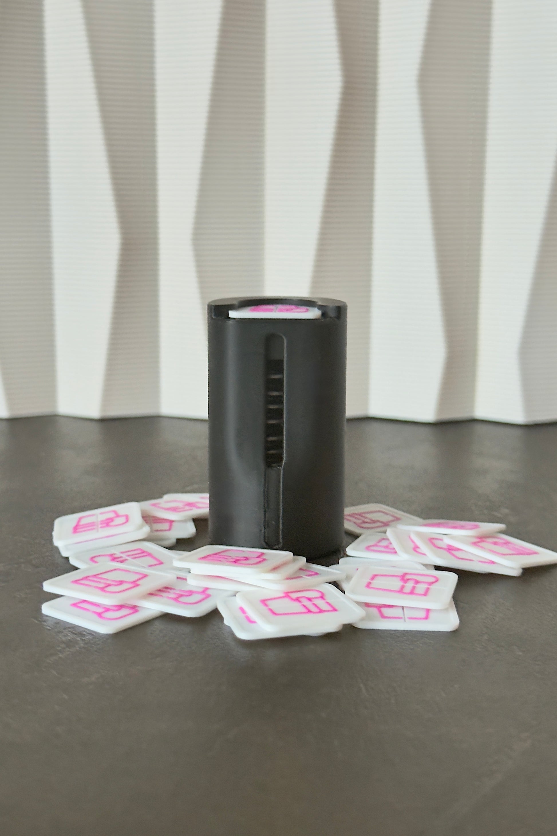 Ce porte-jetons est conçu pour les jetons carrées d'une largeur de 23 mm et peut contenir environ 30 pièces (selon l'épaisseur des jetons).